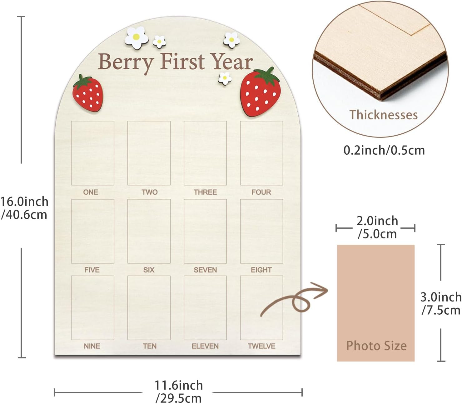【Size & Material】:Density board newborn first year ornament size is 16.0″ H x 11.6 “W x 0.2” Thick made of wood material, smooth surface, not easy to fade, small photo frame inside fits 2 X 3 inches photo, convenient to use.