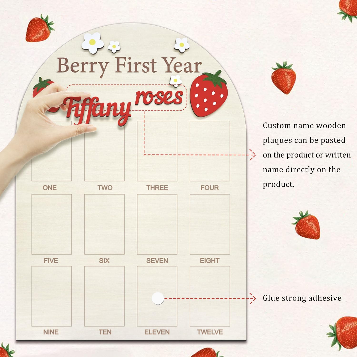 【First Year Photo Board】: You will receive a photo display board , a hook accessory and glue, the photo board has 12 small photo frames to record and display your baby’s monthly growth at the age of 1 year old, and a keepsake to hold on to your memories