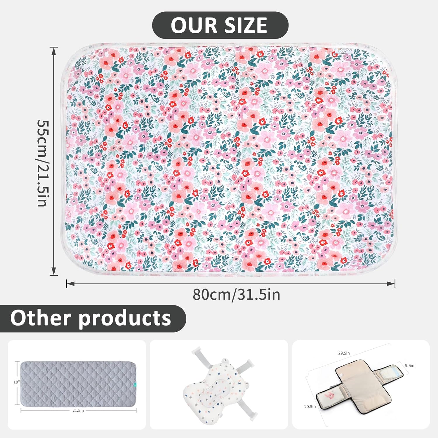 Big Enough – Each changing liner size is 21 5/8×31.5″, which ensures that your baby can change diapers in a safe and clean condition, and it can cover a contoured changing pad.