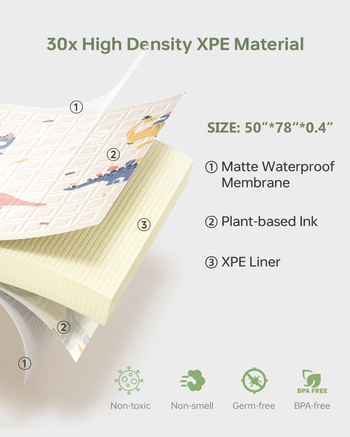 [Waterproof & Easy to Clean]: Our baby play mat is with 100% water-resistant surface,and also easy to clean. Just wipe it down with wipes or tissues. Also, The waterproof surface layer also protect pattern color from falling off, exactly durable to use. This makes it a convenient choice for busy parents.