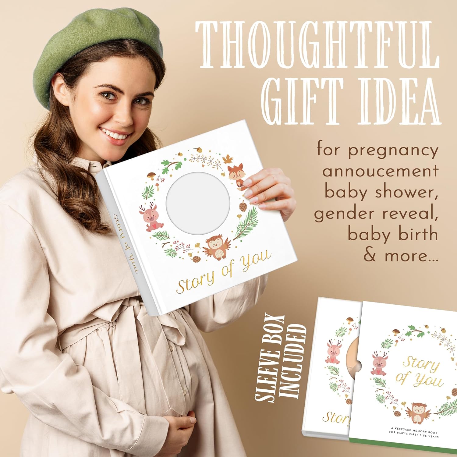 Baby’s Firsts Five Years Memory Book, Laminated Hardcover with Full-Color Print, Photo Cutout, Golden Spiral Binding, 110 Pages, Includes Full-Color Print Sleeve Box, Perfect Keepsake for Newborns