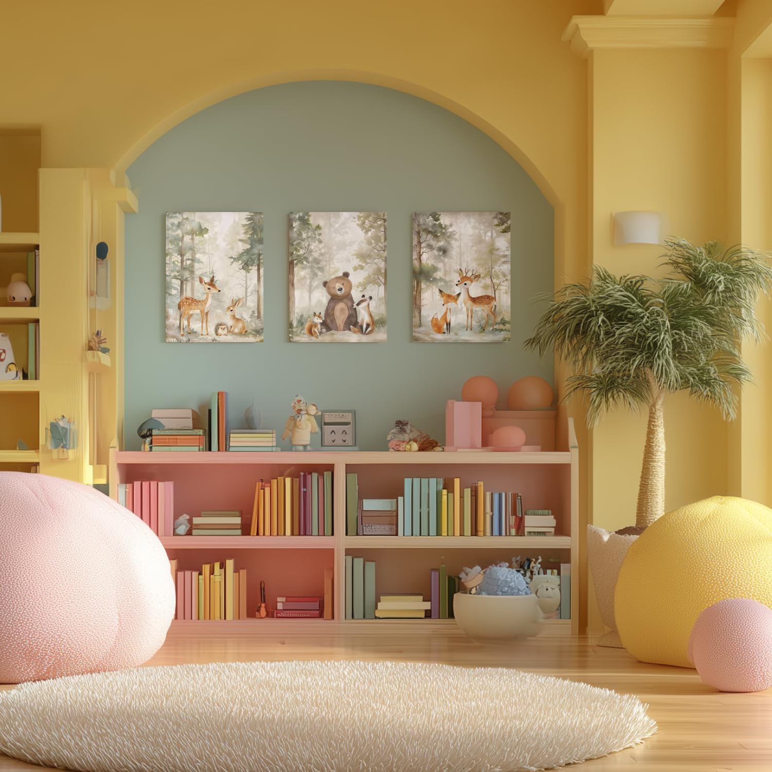For Any Room: Perfect for neutral nursery decor, baby boy room decoration, woodland nursery, and forest room decor. The gentle colors and playful animal scenes seamlessly blend into nursery wall art, classroom posters, and kid-friendly spaces, adding a cozy and calming forest vibe