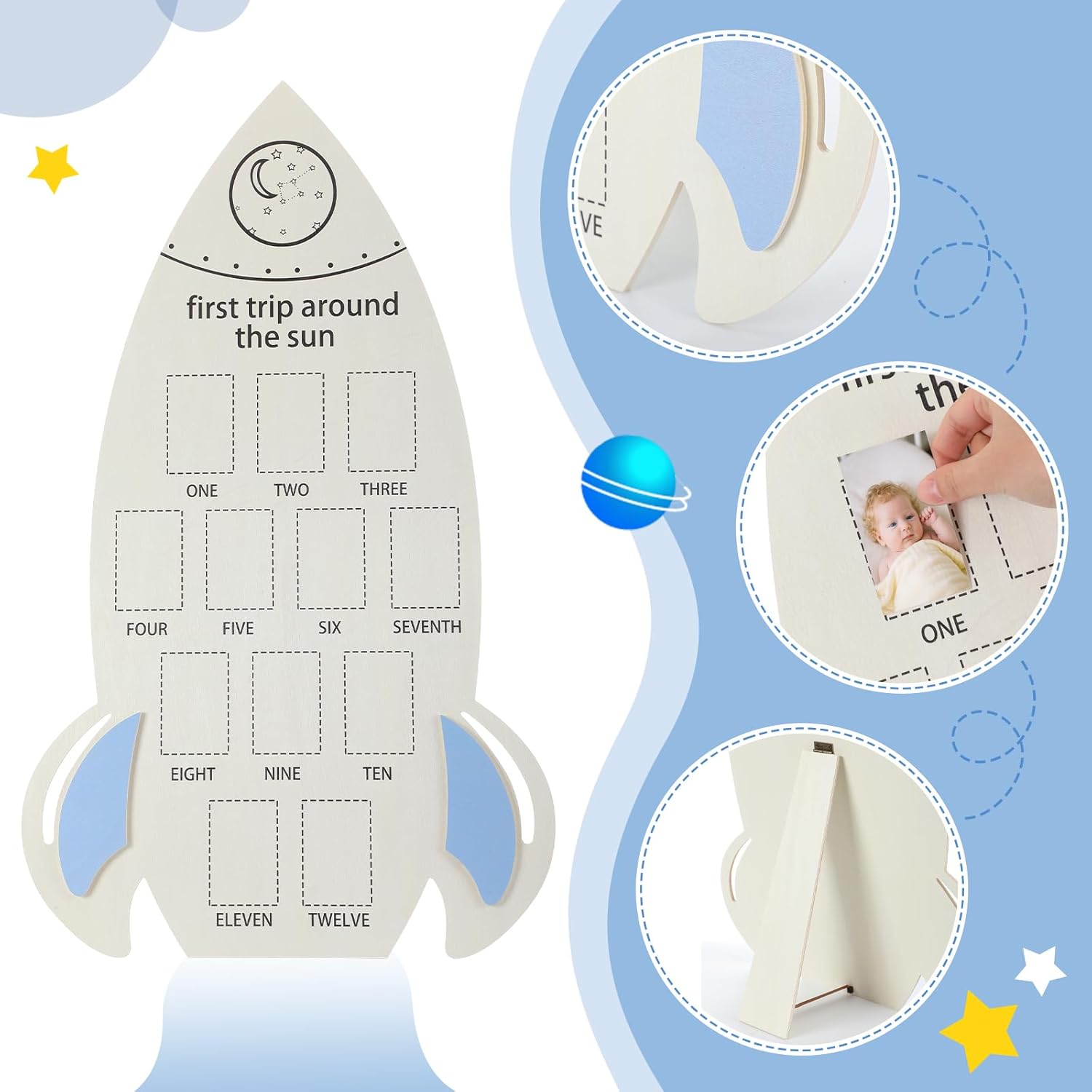 Particular Rocket Shape: our space themed first trip around the sun photo board is designed to make your celebration even more exciting; This particular photo board comes in the shape of a rocket, ideal for displaying your baby’s monthly photos