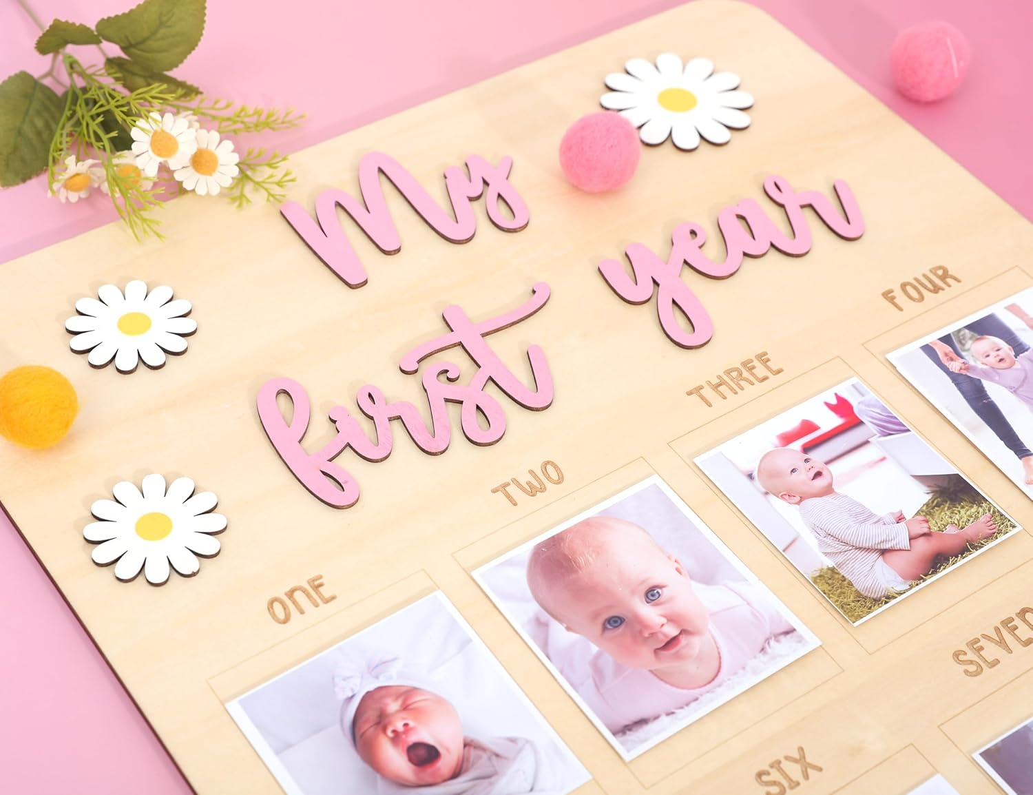 My First Year Photo Board – Floral Wooden Milestone Frame for Baby’s 1st Birthday