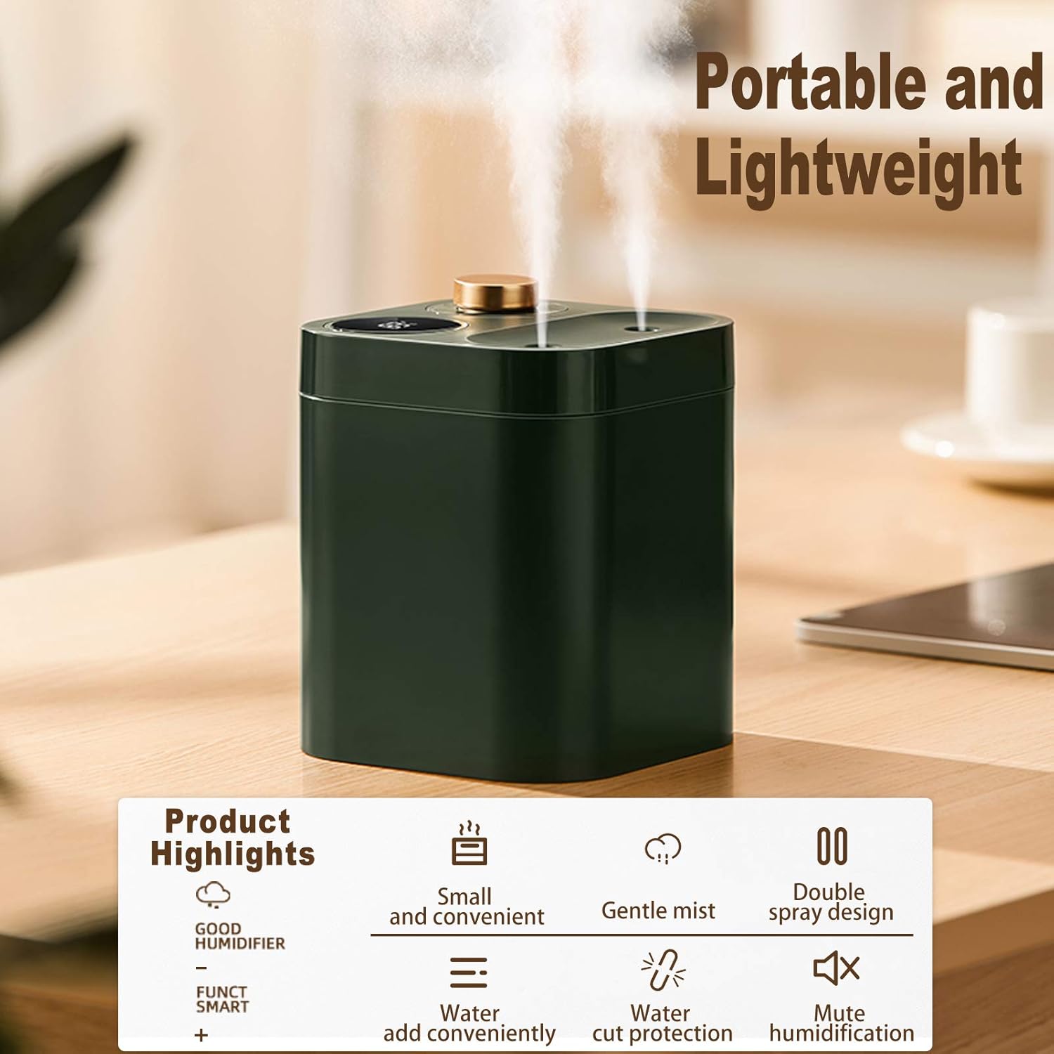 5 Cool Spray Mist Modes Meet Comfortable Humidity Levels .Power Indicator Display and Auto Shut-off.28 db Quiet Whisper Design.BPA Free Material.Ideal for car, home,bedroom,baby room , travel,yoga,office.