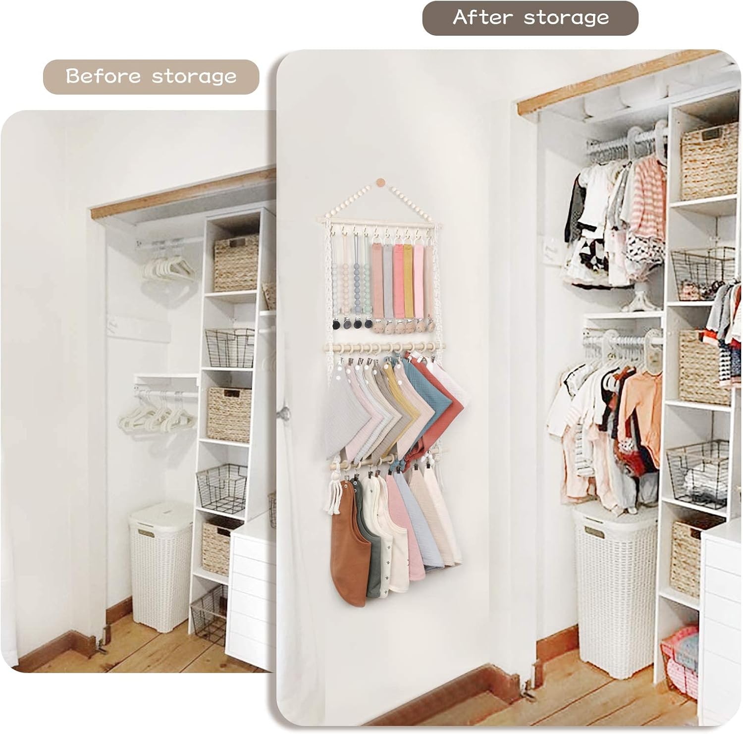 Multifunctional Use: This baby bibs holder can be used in many different ways: it can be used as a pacifier clip holder,drool bibs organizer, burp cloths storage,and baby headband holder. The selection of premium-quality and safe materials and reasonable design can accompany the baby’s growth every day.