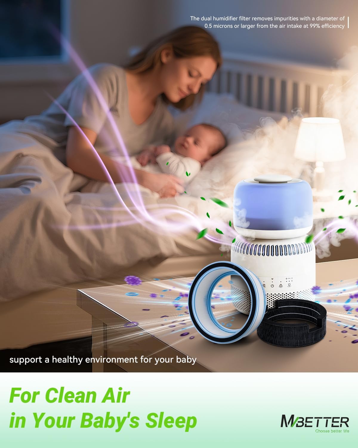 【Carbon Filter & Wick Filters】Our Sprout Replacement Filters & Wick Filters adopts high efficiency carbon, It efficiently adsorbs various unwanted household odors from pets, cooking, smoke, and VOCs.same time add mist-free moisture to the air, supporting a balanced and comfortable environment for your baby