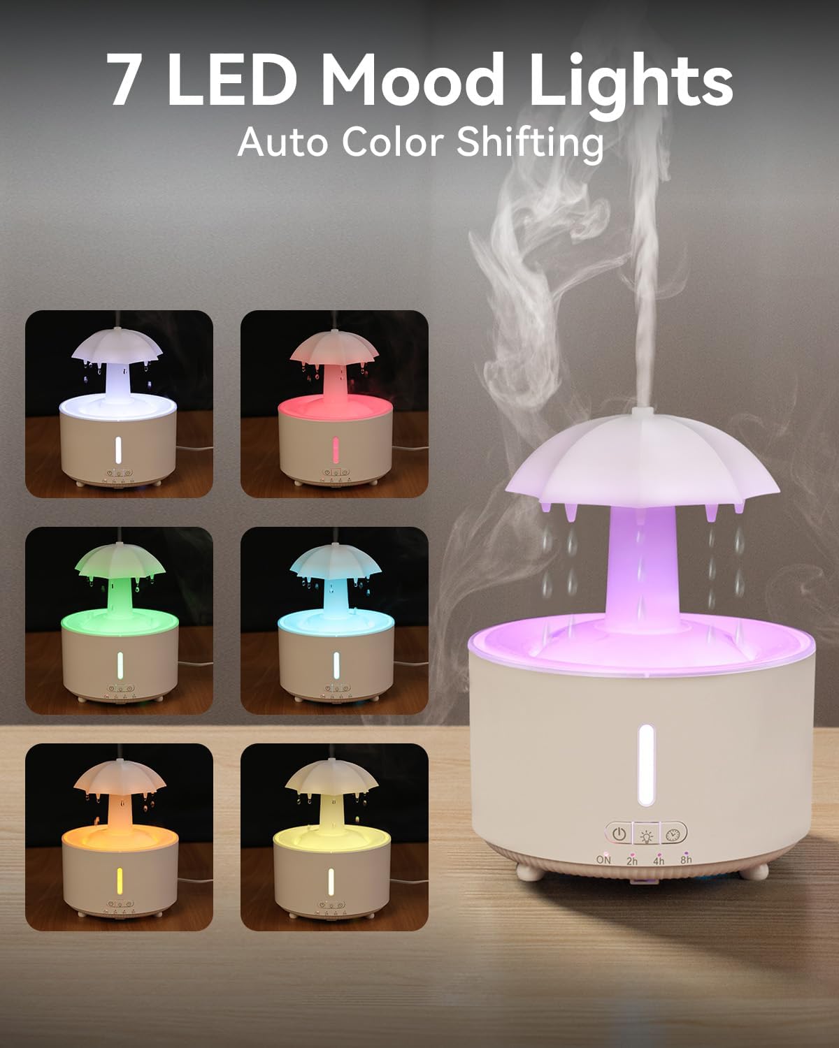 💦【Raindrop Humidifier & Essential Oil Diffuser】Featuring a unique rotating umbrella design—so you can watch the gentle dance of water droplets right before your eyes! This 2-in-1 humidifier and essential oil diffuser blends visual calm, soft ambient sounds, and the soothing benefits of essential oil diffusion all in one. It’s perfect for setting a serene, spa-like vibe at home!
