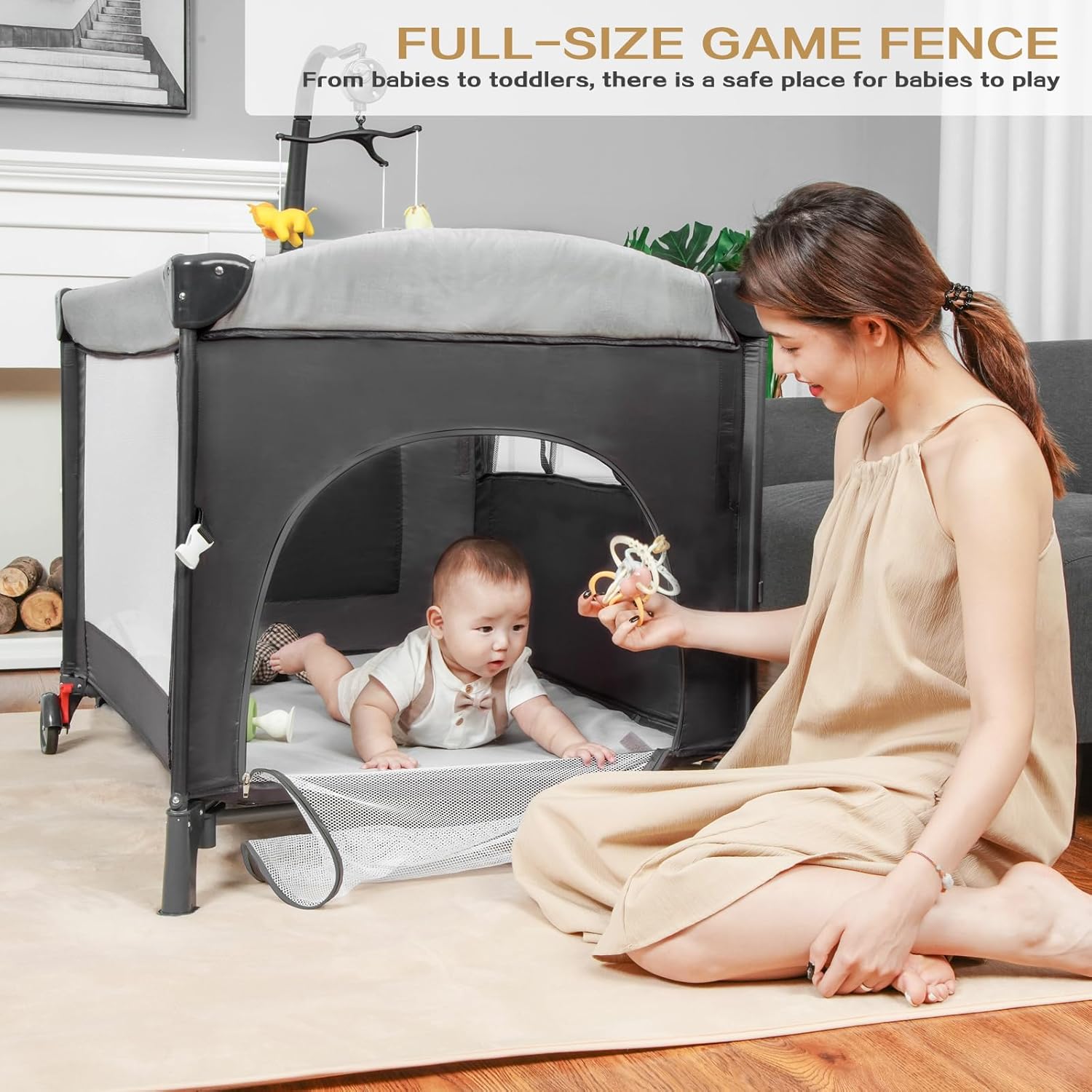 【Baby Pack and Play with Bassinet 】 A full size Baby Bassinet Bedside Crib can turn into the bedside sleeper with the side zipper down for C-sectionas mothers take care of your babe even in the midnight instead of moving drastically. 3 adjustable height designed which meets safety standards