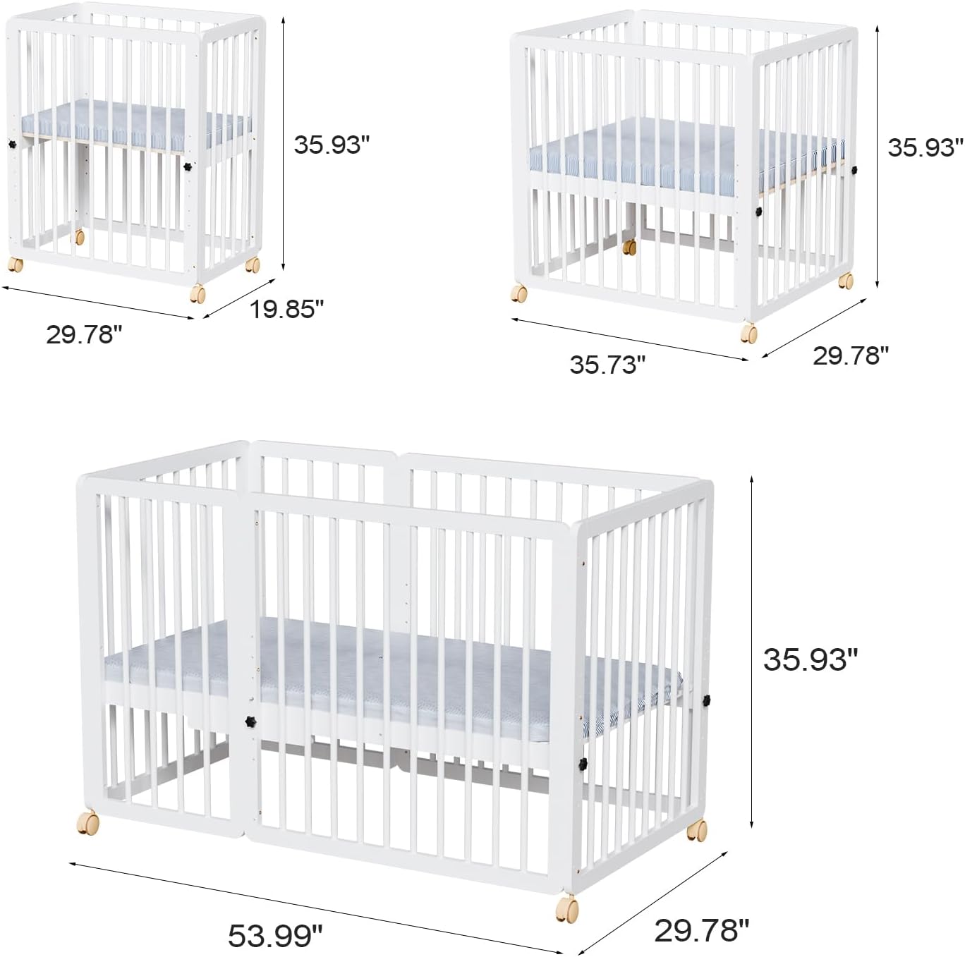 Grow with Your Baby: This convertible crib with wheels adapts to your space and child’s needs. It transforms from bassinet (29.78″*19.85″*35.93″)for newborns to a mid-size crib(35.73″ x 29.78″ x 35.93″) for older babies, and finally to a full-size crib(53.99″*29.78″*35.93″). Perfect for your child’s sleep from infancy to toddlerhood. The bassinet and the mid crib are not a standard size