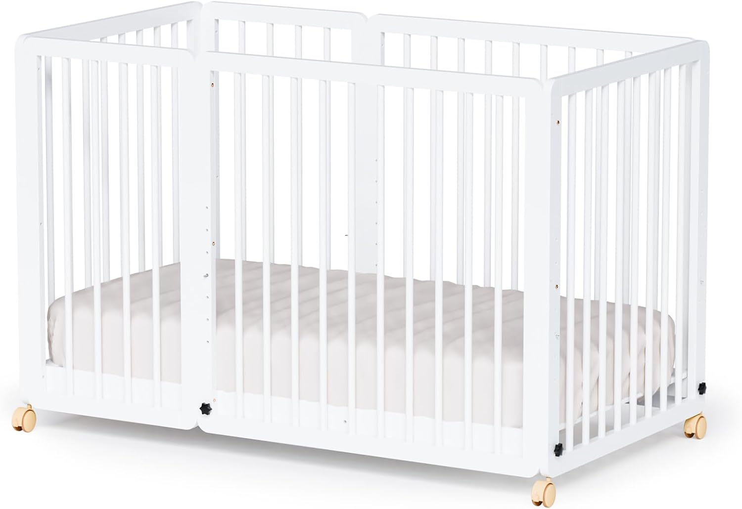 Portable and Adjustable: The portable crib with wheels allows you to easily move the crib, and the mini size crib can fit through room doors. Features 8 height settings to accommodate parents of varying heights, ensuring optimal comfort for most caregivers