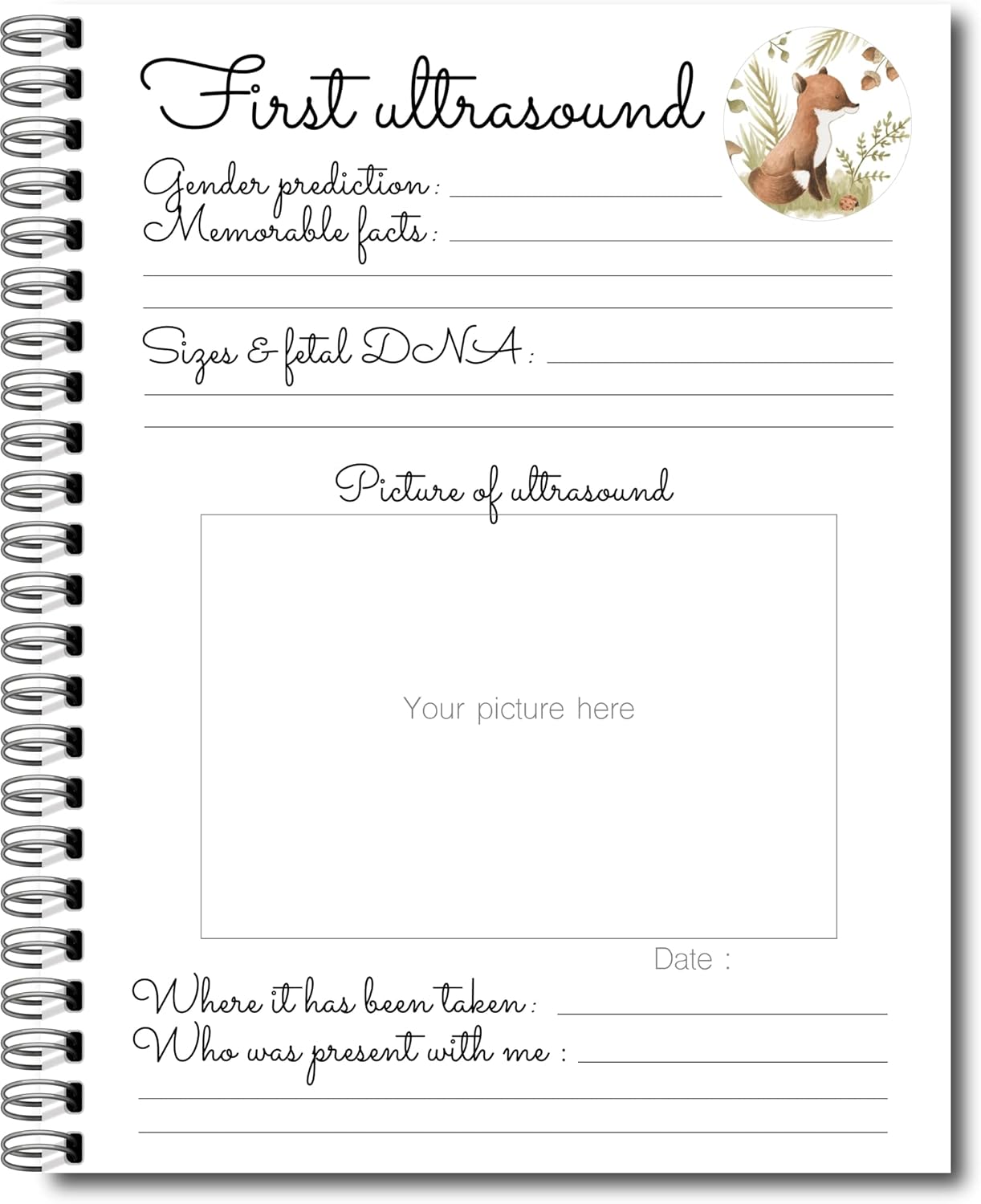 Beautiful book to remember the first year of a baby forever! Simple and refined, quality printing in color for the cover and monochrome for the interior Soft matte cover 100 lbs watercolor style textured Inside on a premium quality 80lbs paper All from responsible sources The book is 8.5 x 11 inches and it can hold photos up to 4 x 6 inches. Wire-O type metal binding. The book is sent in a thick bubble envelope to protect it against manipulation and bad weather. The book contains 64 pages, including: -Cover pages (C1-C4) -Introduction – Ultrasound (big news) -Shower -Birth (Hello I’m here!)-Memorable facts after each “birthday month” -My mom + space for a note for later -My dad + space for a little note for later -My godmother + space for a note for later -My godfather + space for a note for later -My growth -My footprints “I have one month, two months” etc up to 1 year (I like, I don’t like, I can) “Smash the cake” and description of the 1-year-old party