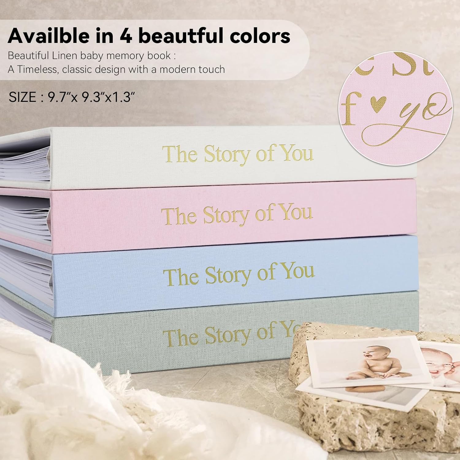 A Timeless Keepsake baby book for Your Little One :1DOT2 Premium Baby Memory Books are made from superior quality materials which means they’re designed to last several lifetimes.From the durable, A Grade linen cover, meticulously embossed with gold stamping, to acid-free inner pages (archival safe, certified by the FSC) – all the materials used are of the highest standard. Furthermore,each one is handcrafted from age-old bookmaker’s techniques and the latest in print technologies. So choose our 1DOT2 baby memory books to ensure they’ll be cherished for generations to come.