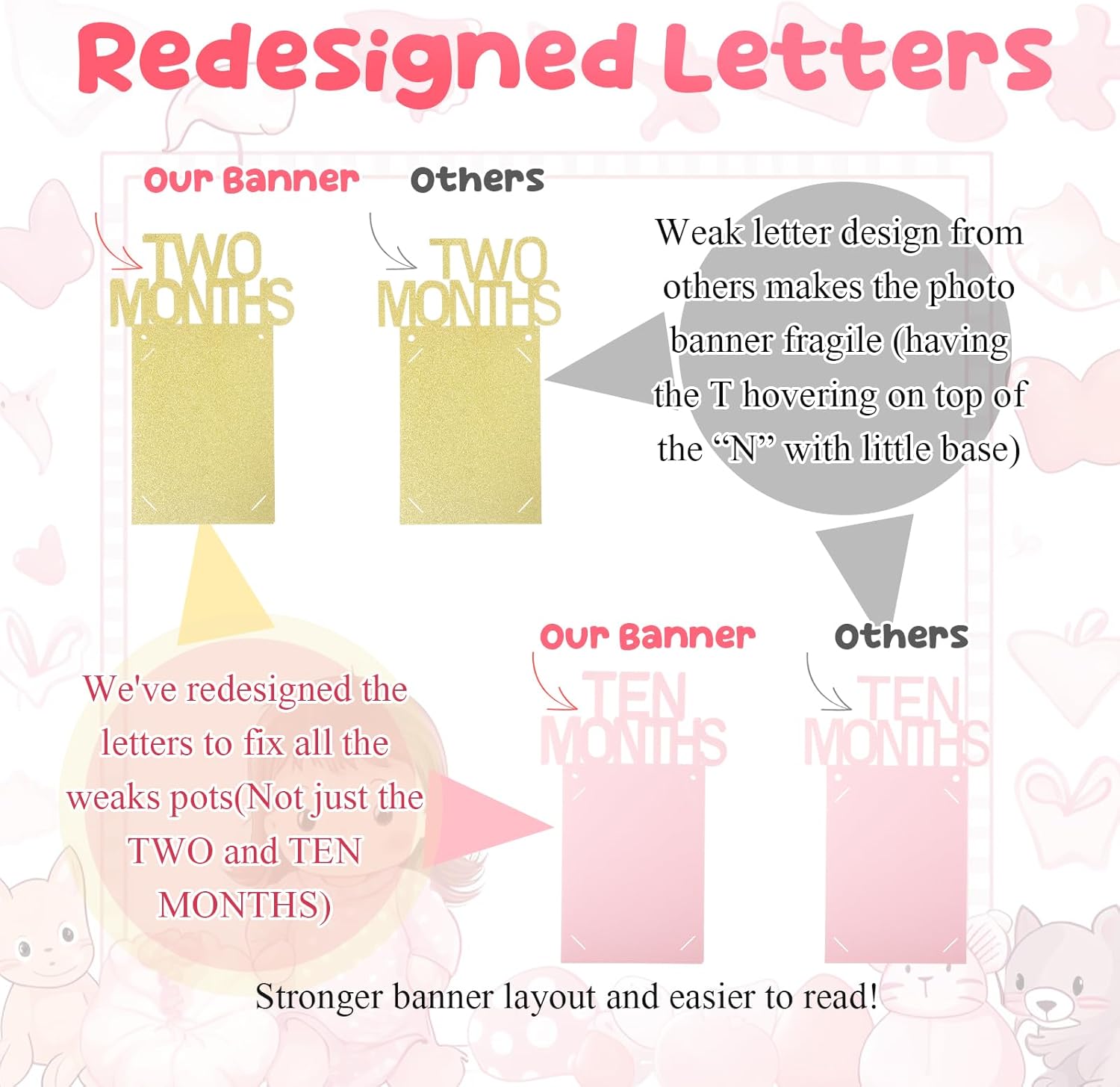 Ideal Party Decoration and Gift: the monthly milestone photograph banner is suitable for a baby’s first birthday party, baby shower, nursery decorations, first birthday party, high chair decorations, mantel decor, home decorations; It’s an ideal choice for displaying your baby’s precious memories from newborn to 12 months
