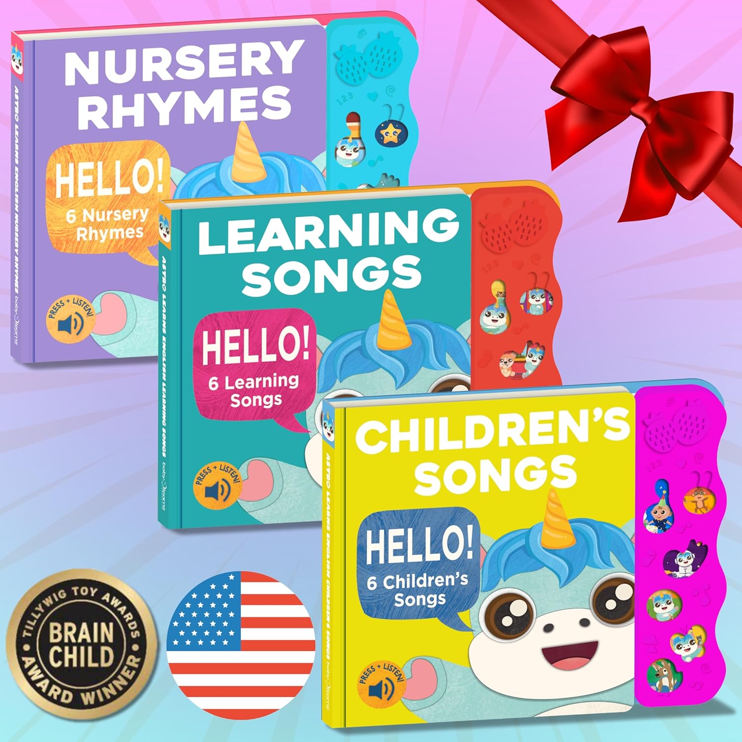 THE PERFECT MONTESSORI TOYS FOR 1 YEAR OLD. These sound books are the perfect 1 year old learning toys—ideal for gifts for 1 year old girl, 1 year old boy gifts, or one year old girl birthday gifts. A top choice among calis books for children, they double as interactive books, musical toys for toddlers 1-3, and talking books for toddlers 1-3. Learn English with Astro Learns English, one of the best educational toys for 1+ year old children and nursery rhyme books that engage and delight.