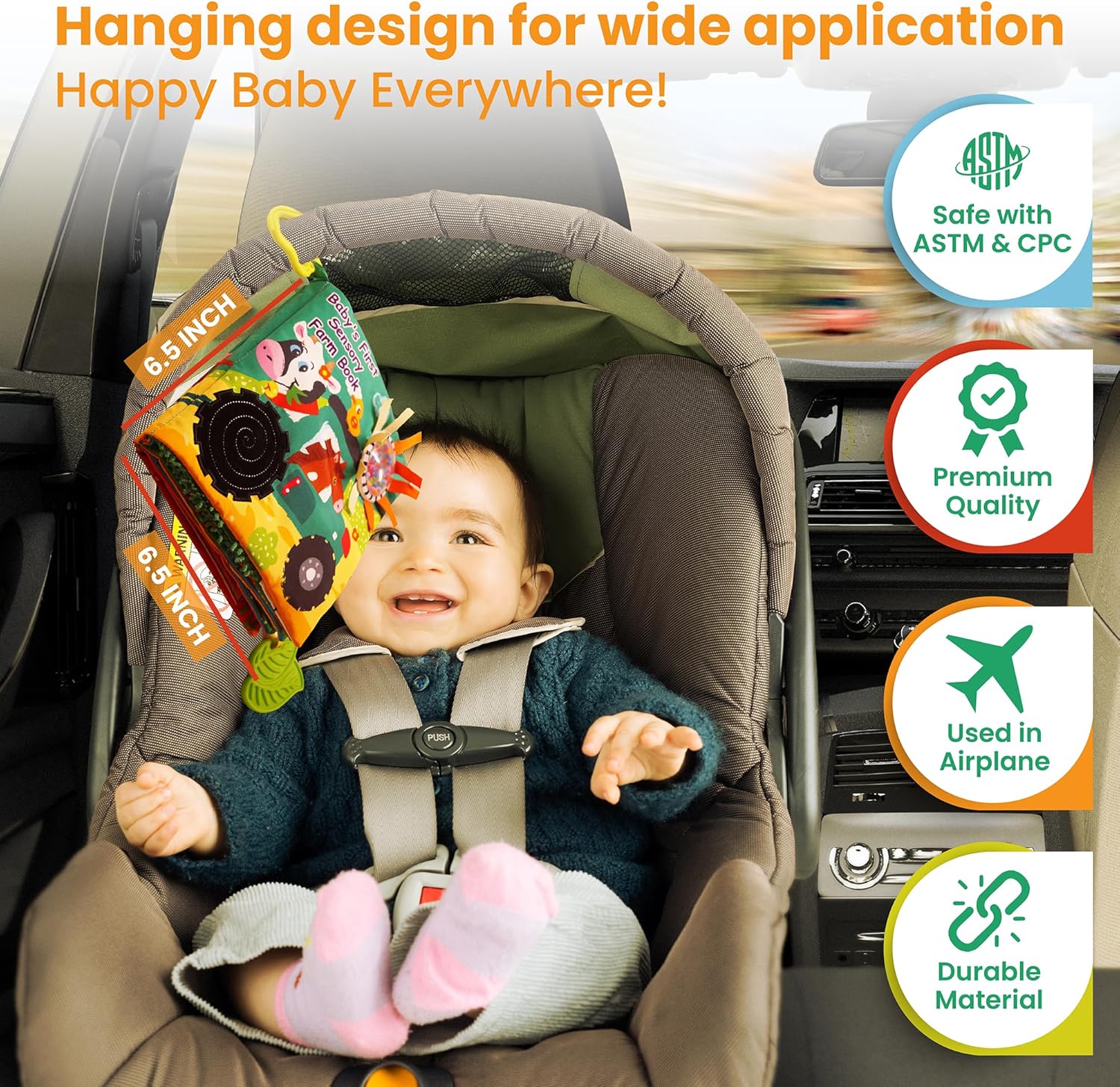 Travel Friendly & Perfect size for little hands: Ideal baby book for Newborn, baby toys 0-6 months,baby toys 6-12 Months,12-18 Months & Toddler.This book has a On- the- go clip to hang on stroller, baby car seat, road trip & to take along on airplane for on-the-go fun.