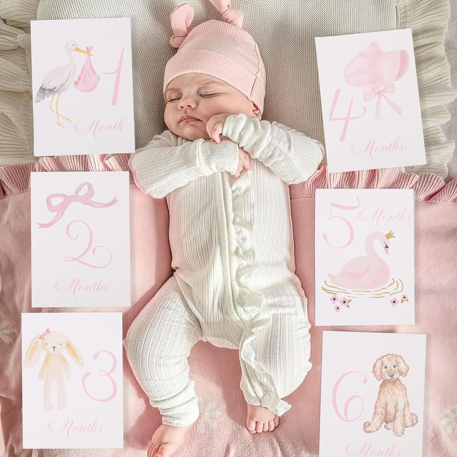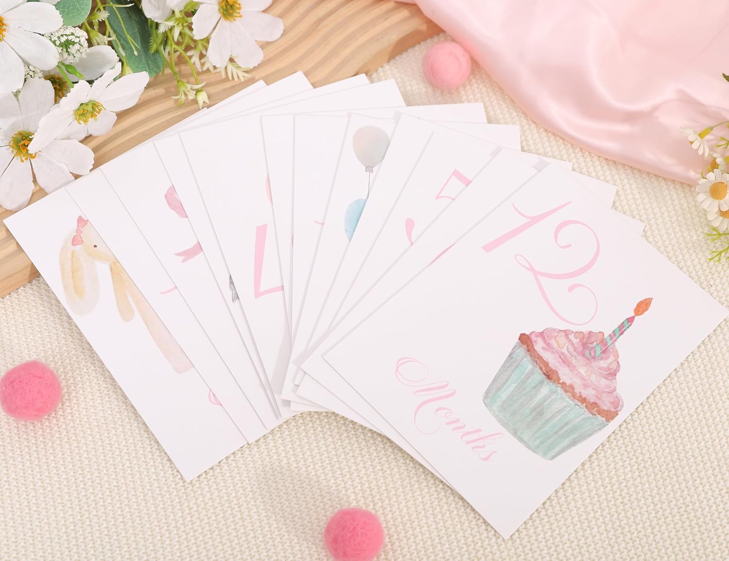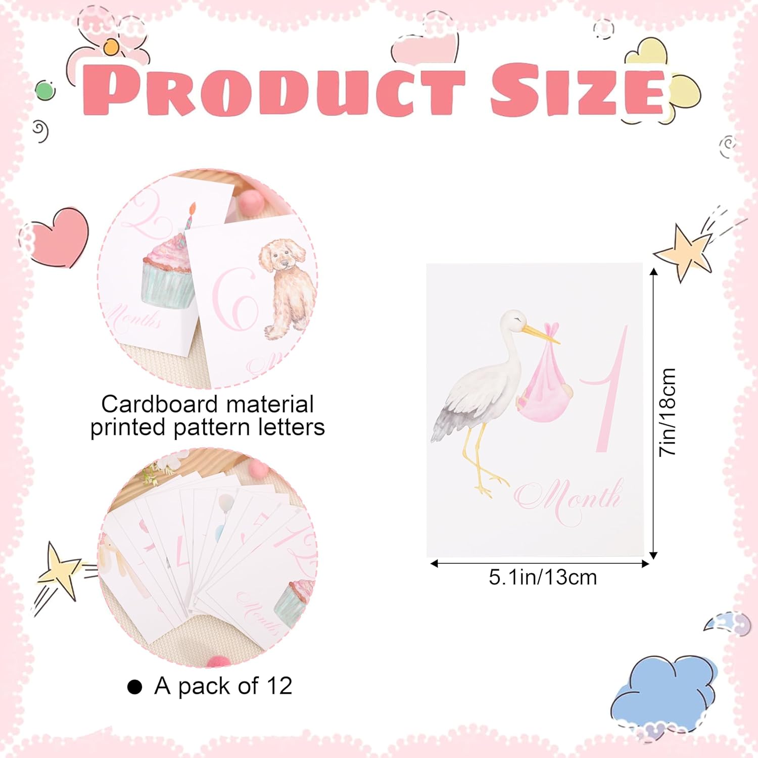 Baby First Holiday Cards – First Year Cards,Monthly Milestone Baby Shower,Milestone Monthly Holiday Photo,Photo Props (pink)