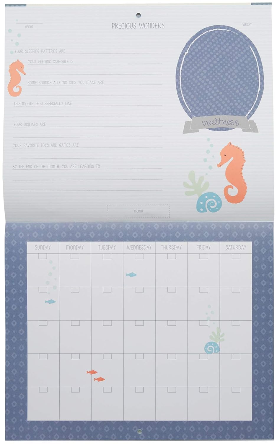 Designed with a pastel blue nautical theme, this cute baby calendar is complete with all kinds of adorable aquatic accents!