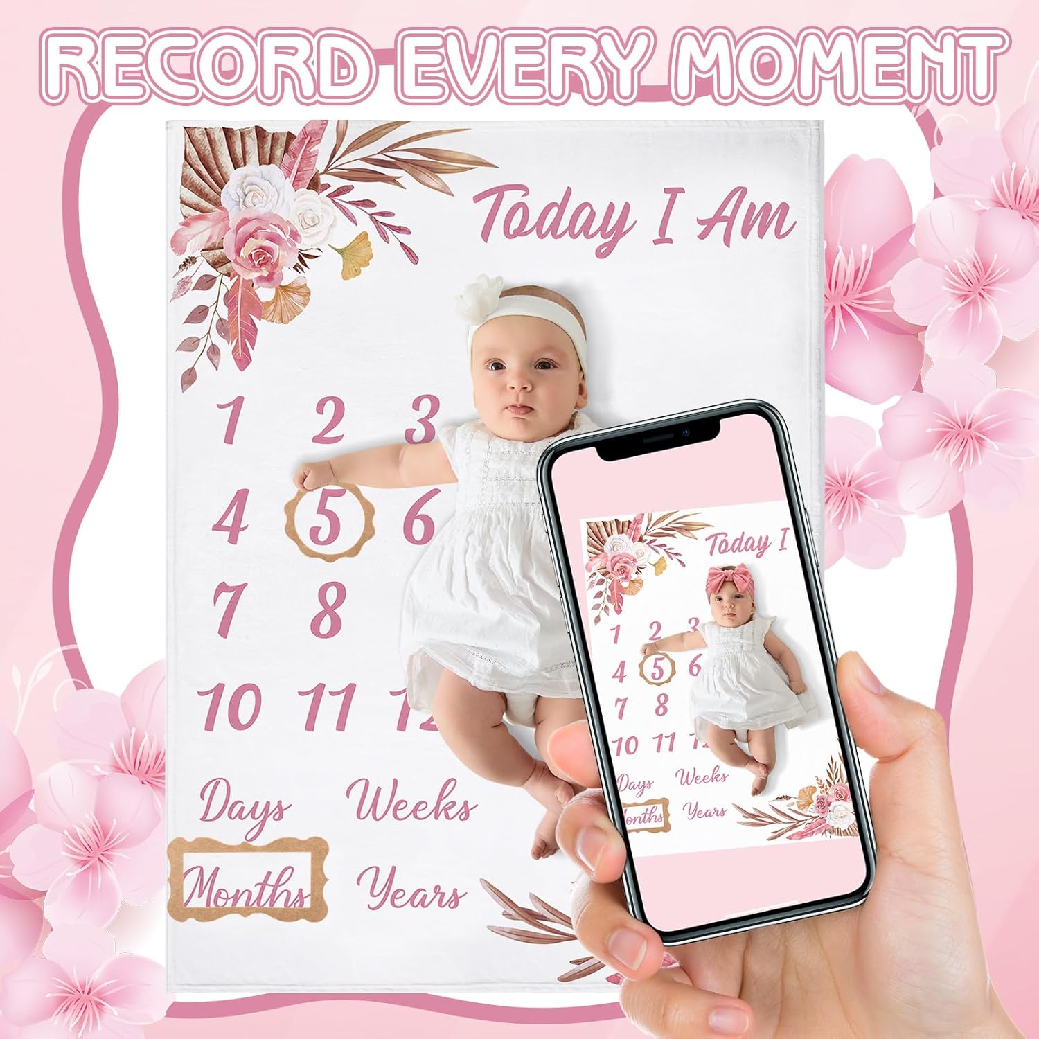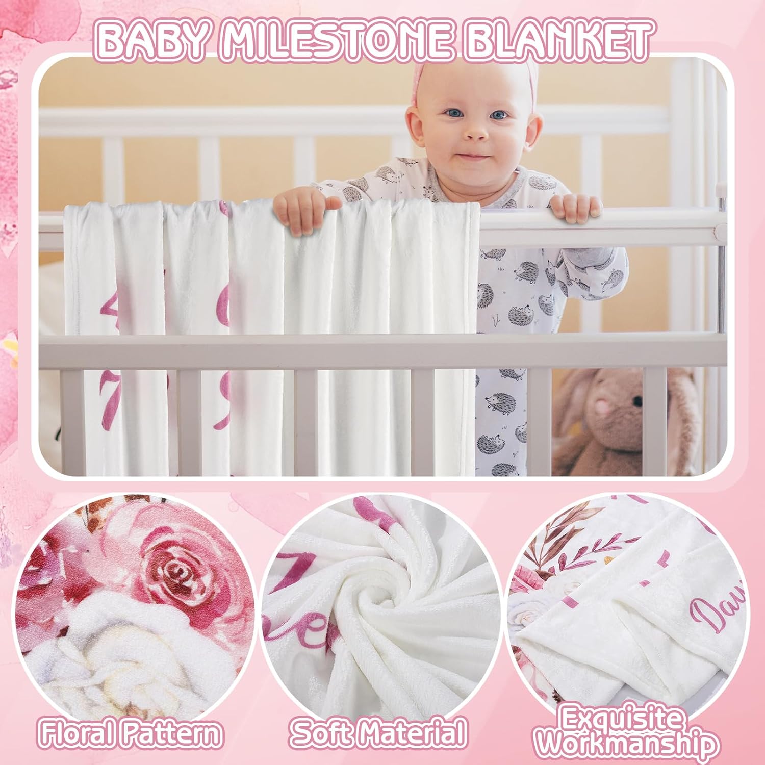 【Practical Gift】This newborn monthly milestone blanket designed with flowers, that suitable to capture beautiful moments, add a touch of cuteness and playfulness to photo, it is a good and useful gift for new parents.