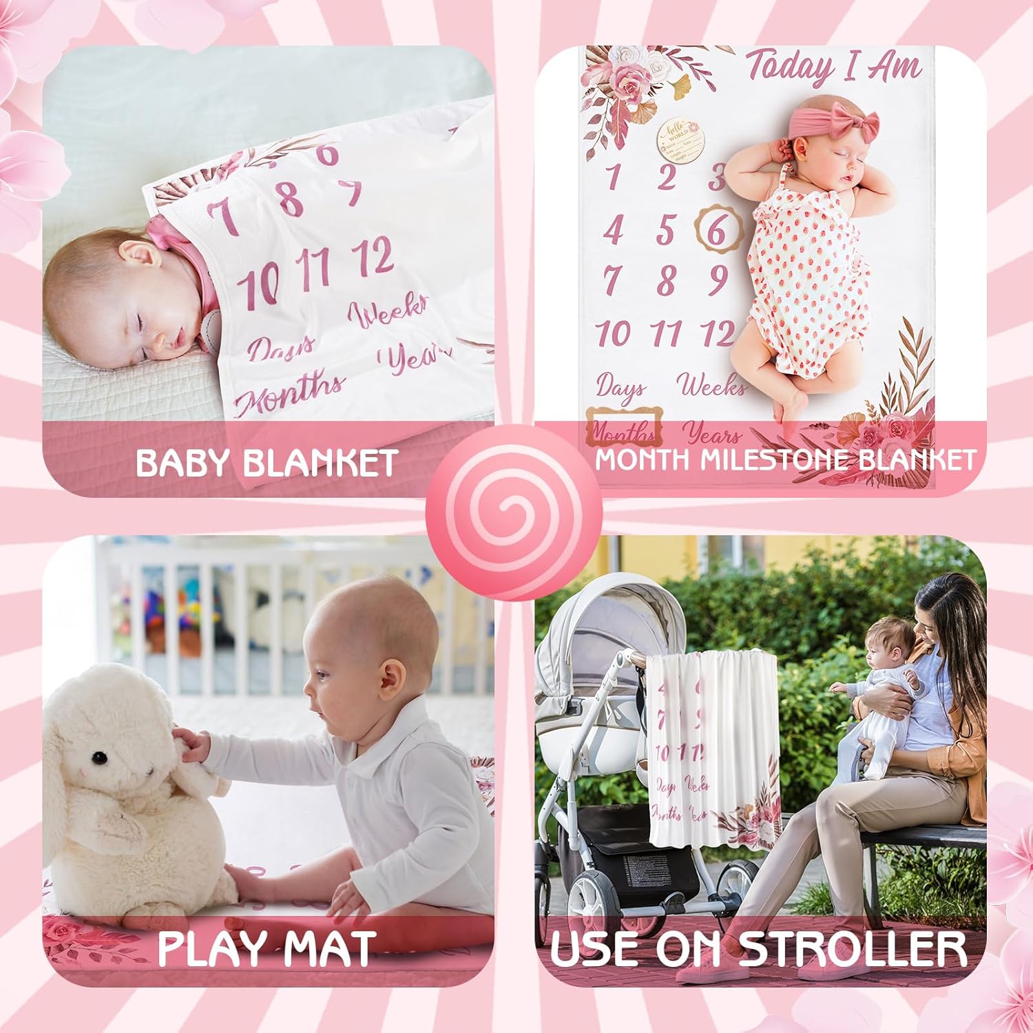 【Wide Use】Our baby monthly milestone blanket suitable for many occasion, such as baby girl nursery decor, baby blanket, photo backdrop, baby play mat, baby sleep blanket, baby souvenir, etc.