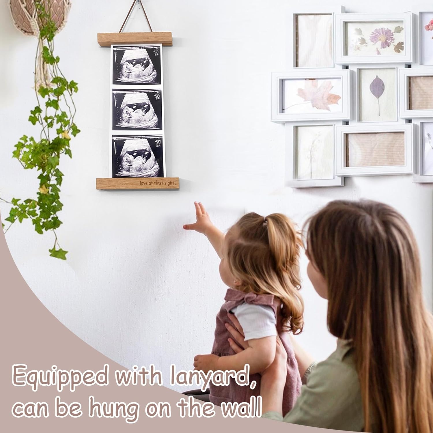 Magnetic Ultrasound Photo Frame, Wooden Baby Keepsake Display with Love at First Sight, Hanging or Fridge Mount – No Crop Needed for Long Sonograms, new mom gifts
