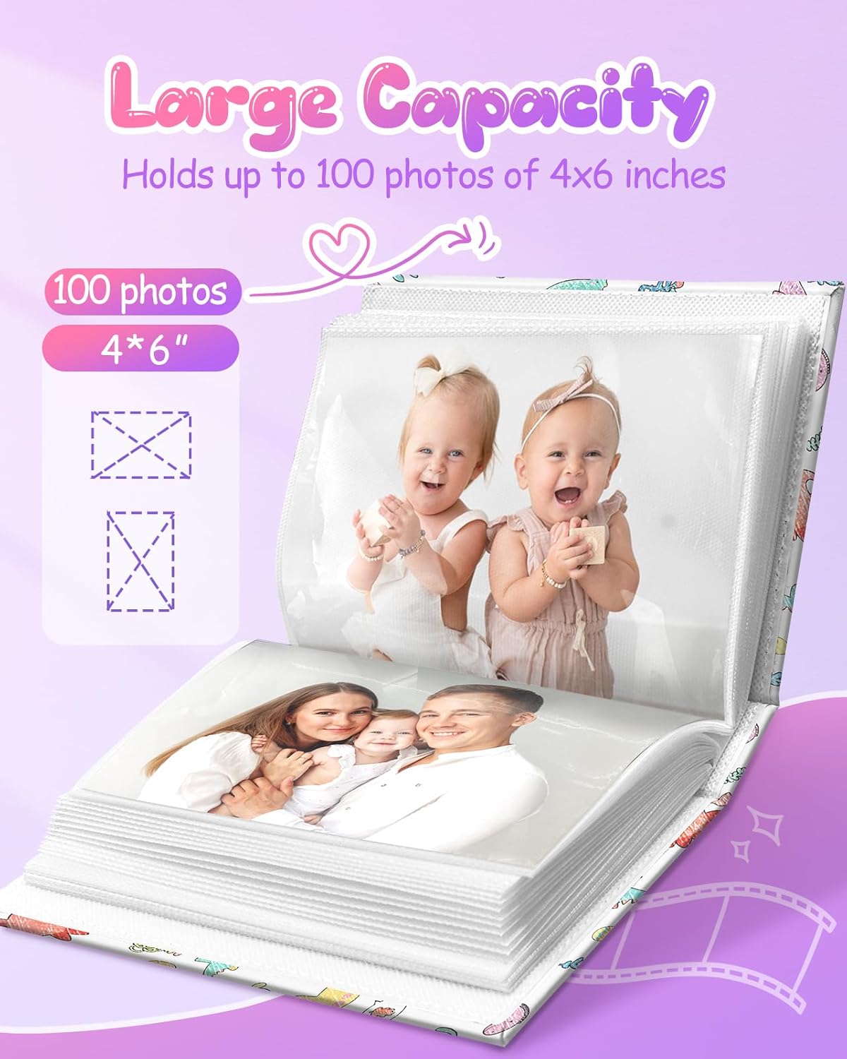 Large capacity: photo book can hold 100 photos in 4×6 size, and the height of each page has been increased by 0.5 inches to prevent photos from being exposed or falling off,but also waterproof and tear-resistant
