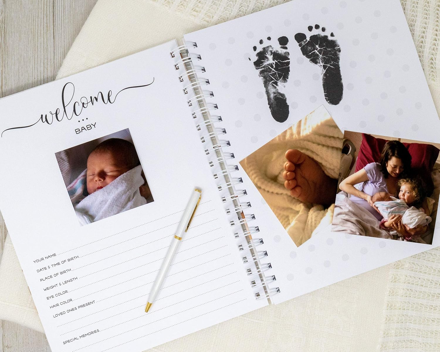 This Charmbooks baby memory book is perfect for capturing all of the precious moments from your baby’s first year. Each personalized hard cover, handcrafted book includes 62 fill-in-the-blank, journaling and photo/memento pages. Designed with a classic, minimalist look, this baby book includes thoughtful prompts and spots for photos so you don’t forget a thing!