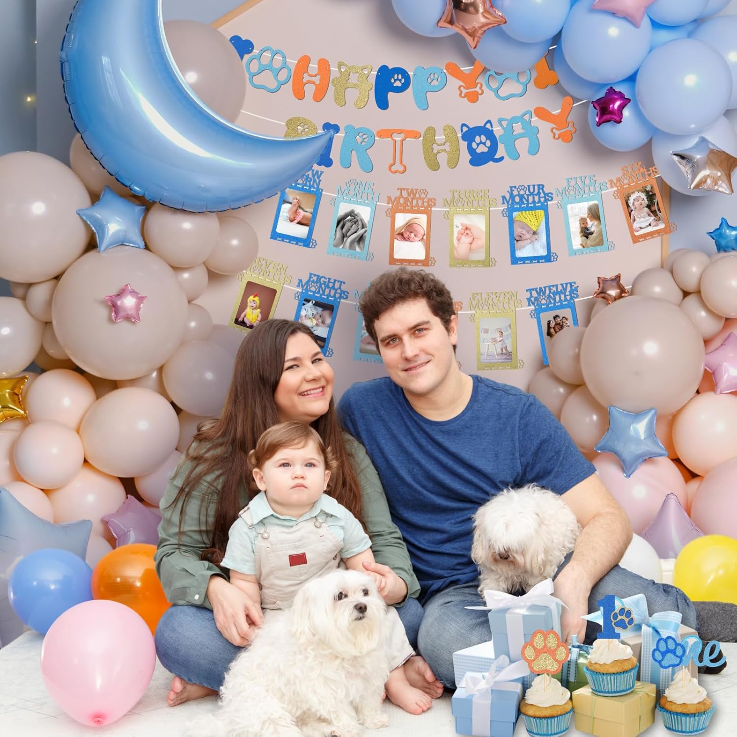 Blue Dog First Birthday Party Decorations: Celebrate your little one’s first year with our birthday banner set, featuring adorable dog paw elements and the words”HAPPY BIRTHDAY”, “NEW BORN” to “TWELVE MONTHS” in a beautiful combination of orange, navy blue, light blue, and gold. It will add much touch of charm to your baby’s first birthday party or baby shower