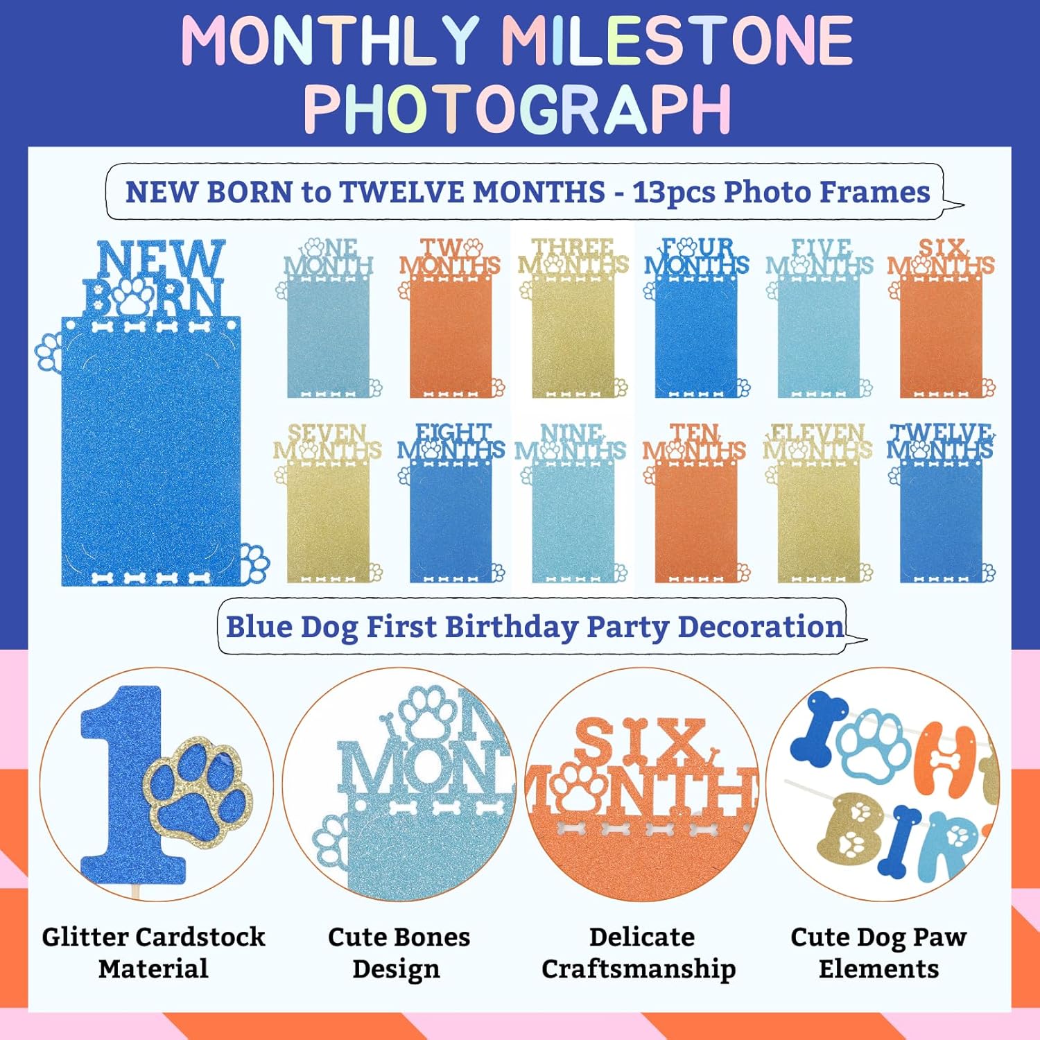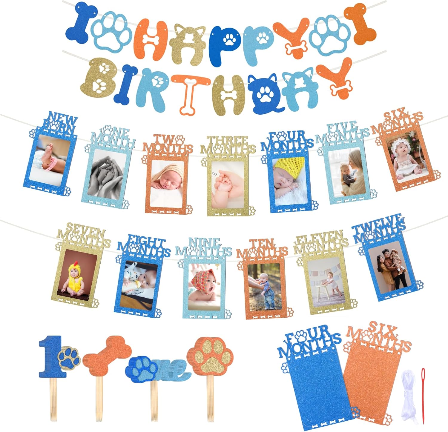 Delicate First Birthday Supplies: The glitter first year design and monthly milestone photograph adds the touch of active and sophistication to birthday party decor, making it a standout event. 24pcs cake toppers come in cute dog paw elements and first birthday styles, which will elevate your party gathering atmosphere and have a great time with families and friends, or with your puppy