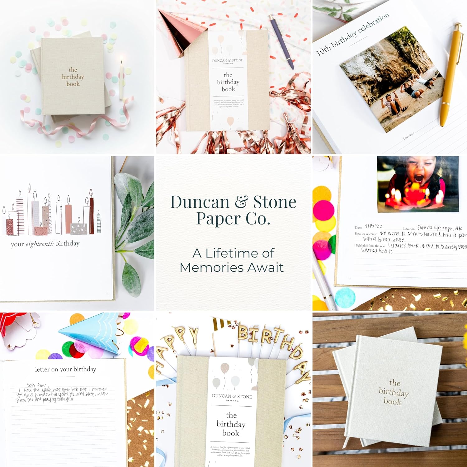 Durable and Elegant: This 80-page 9.25” X 7.75” birthday book journal is made from premium linen cloth & features exquisite gold foil accents; a convenient pocket at the back of the baby scrapbook album provides storage for extra items like photos or notes