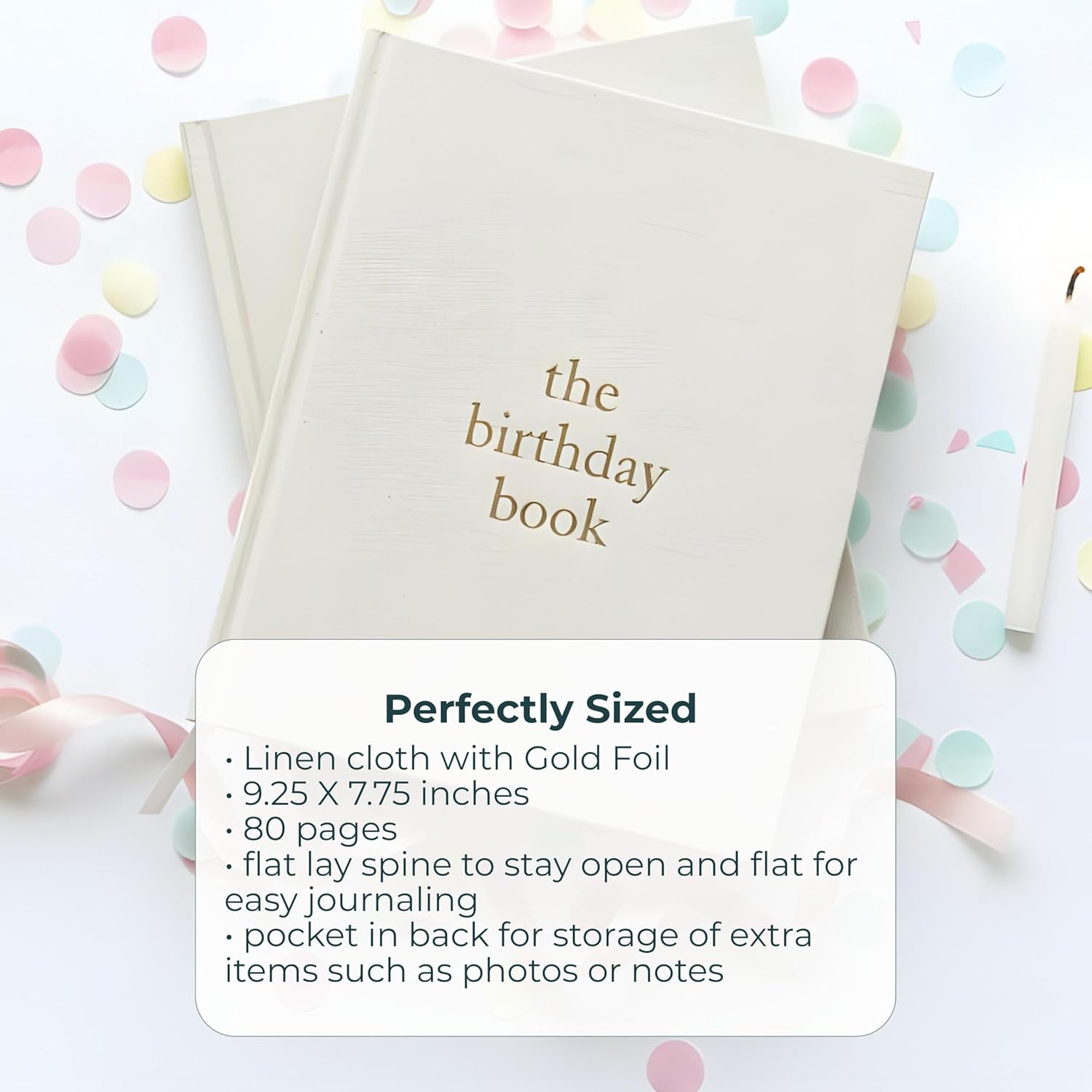 Durable and Elegant: This 80-page 9.25” X 7.75” birthday book journal is made from premium linen cloth & features exquisite gold foil accents; a convenient pocket at the back of the baby scrapbook album provides storage for extra items like photos or notes