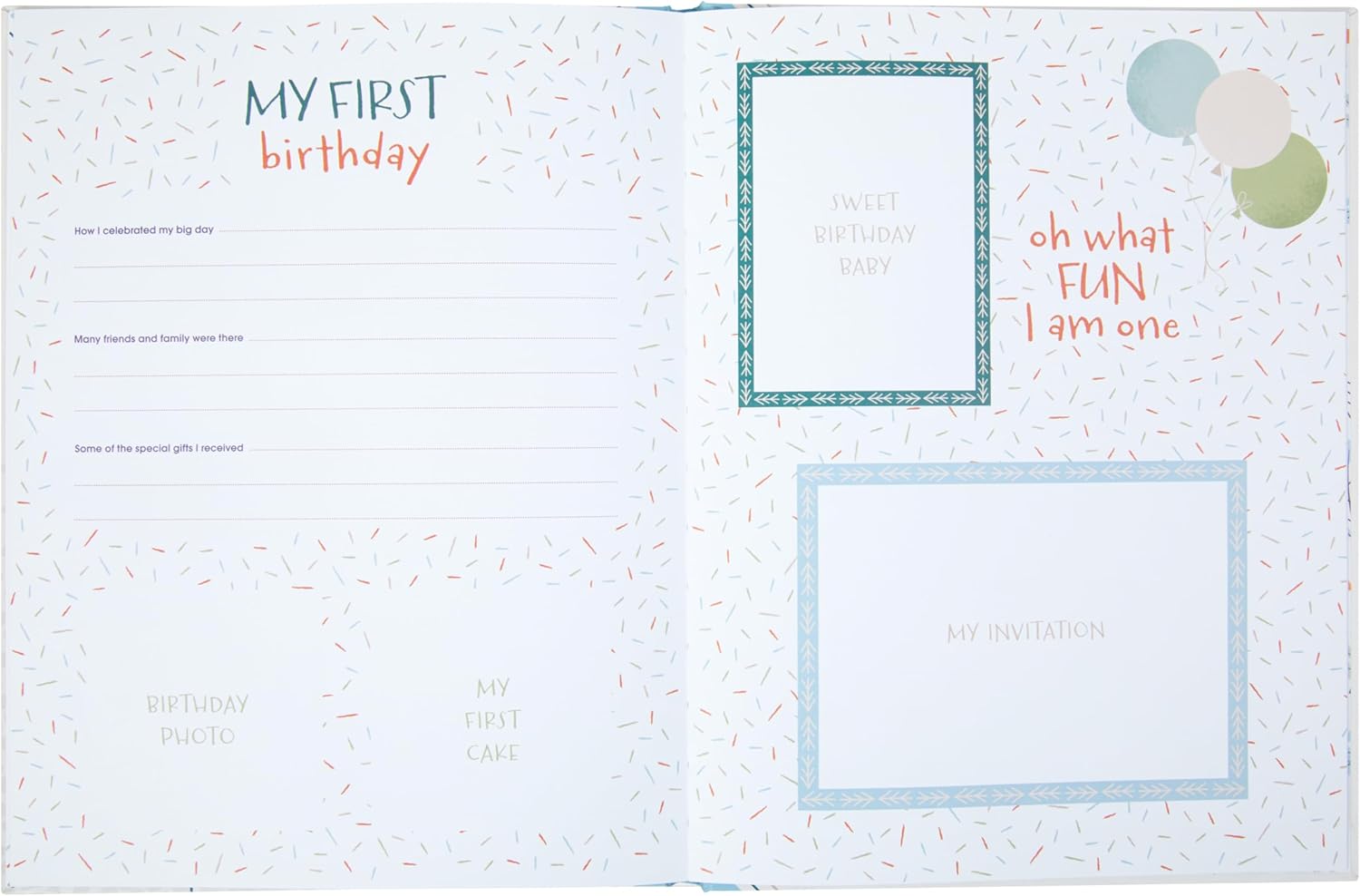 Capture all of baby’s meaningful moments and memories with our first 5 years baby keepsake book! Featuring a classic gender neutral design that makes it a lovely baby memory book for boys or baby memory book for girls, our baby keepsake book centers around your little one’s first five years with a special focus on year one. It includes pre-birth special events, month by month memory pages, sections for baby’s firsts, and tons of other unique, guided content alongside original art and illustrations on every page. Made with gifting in mind, our newborn keepsake books are designed with lignin free and acid free archival paper and come packaged in a protective storage sleeve to ensure your baby shower present is always in perfect condition. This infant memory book measures 8.75″ W x 11.3″ L and features 48 guided pages.
