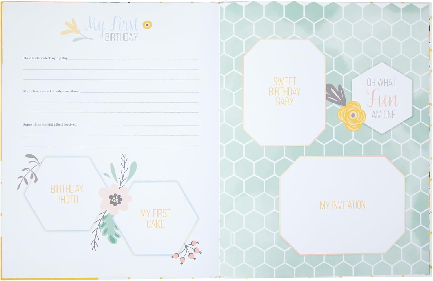 Bold golds balance soft muted pastels and grays creating a bee-utiful combination of sweetness and make our baby’s first year memory book a beautiful way to celebrate and save every little moment and major milestone
