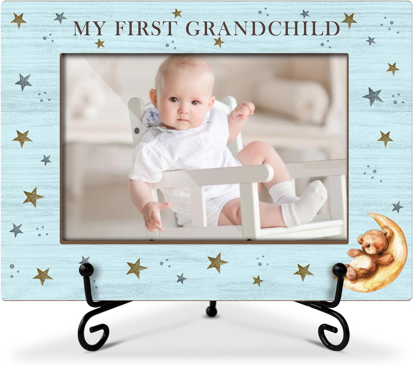 My First Grandchild Wooden Photo Frame Mothers Day Gifts Love Gifts for Grandma Nana, Wooden Photo Frame with Iron Stand for Tabletop or Desktop Display, Home Table Decor (4×6″ Horizontal Photo) – 49