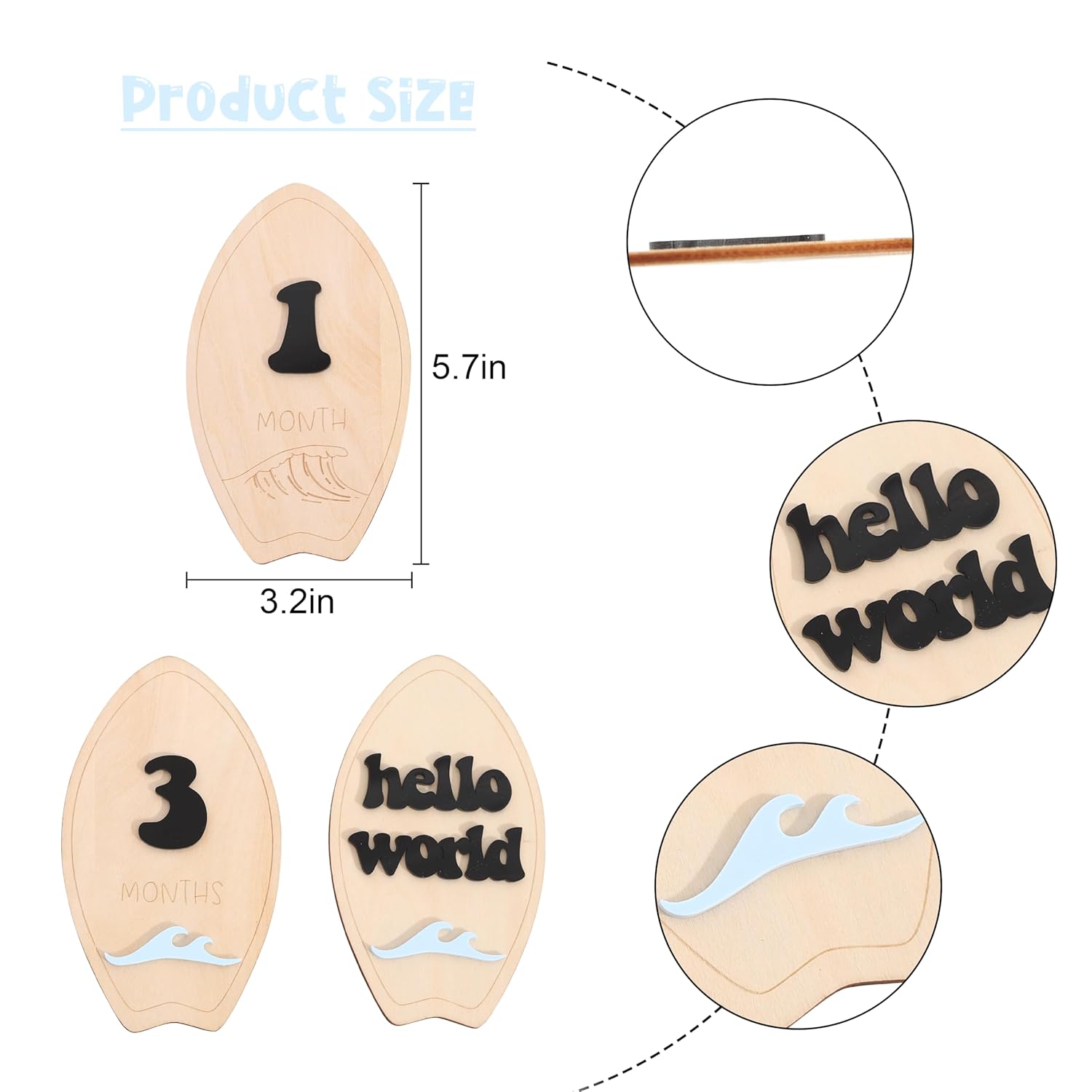 Interchangeable Acrylic Numbers: This set includes black acrylic numbers that can be easily swapped out to mark each month, making it reusable and versatile from 1 to 12 months. The “hello world” board is the perfect intro to your baby’s monthly photo journey!