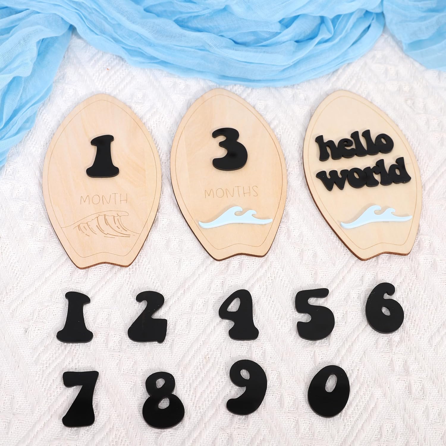 1 x surf board monthly milestone card; 5*3.9 inches; acrylic number 0-9