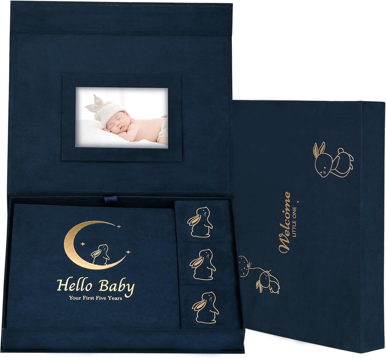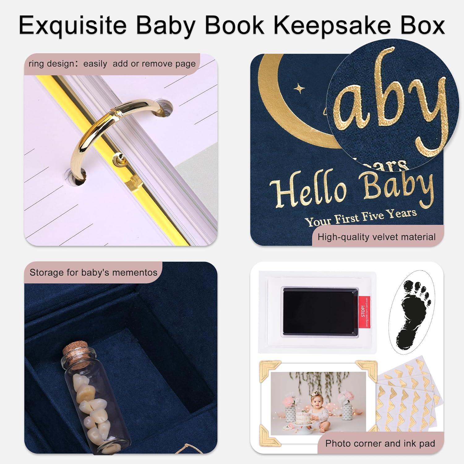 Practical & Personalized Box: This baby book set is not only a great way to preserve memories, but also provides stickers, photo corners, and glass bottles for your personal customization. The velvet box offers plenty of space to store baby’s drawings, letters, awards and other items such as hospital wristbands, first tooth, first haircut and other memorable items to make it even more special
