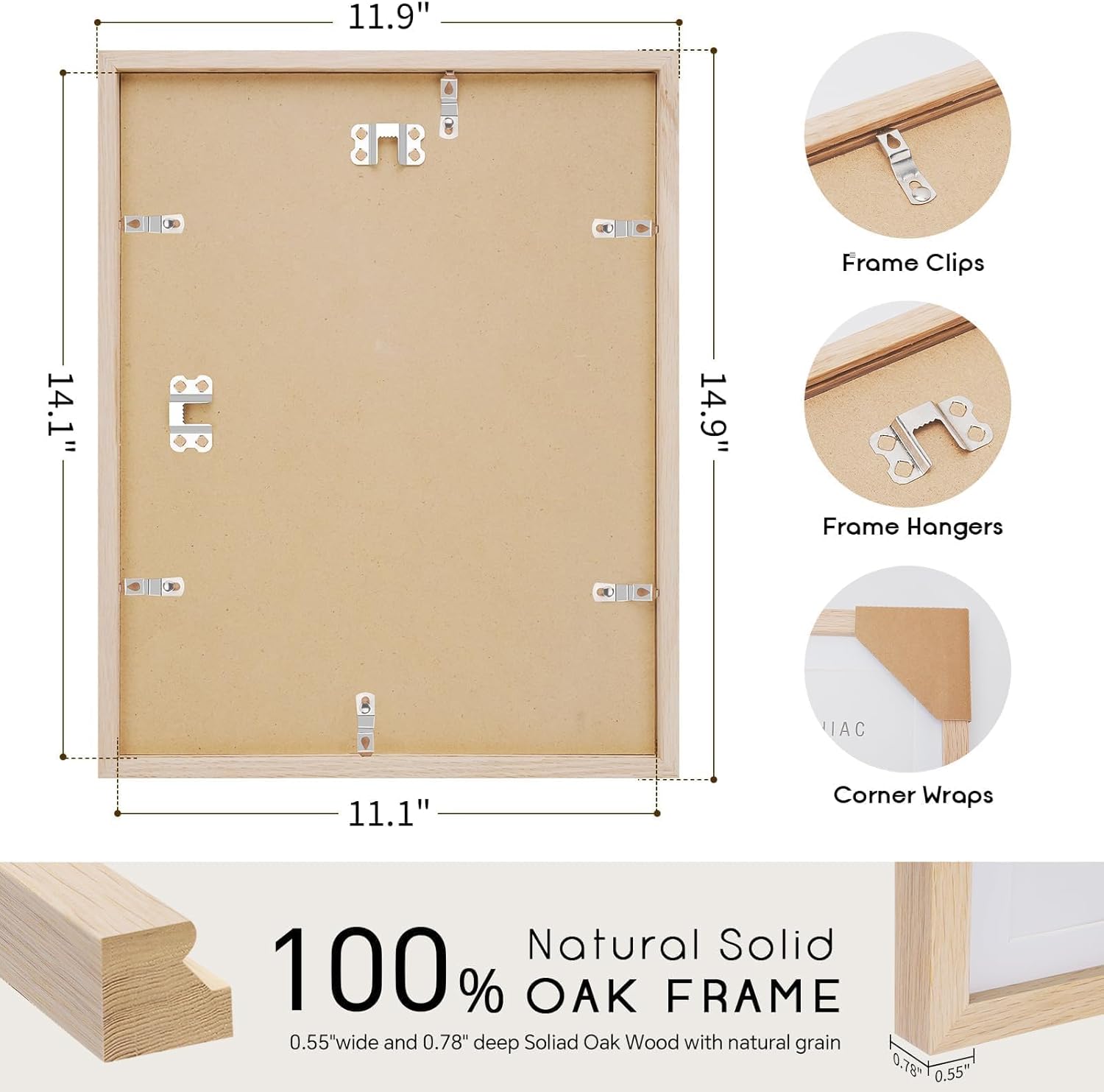 Durable and Scratch-Resistant: The oak wood frame size is 11×14 in, 0.6 inch wide, and 0.8 inch deep, shipped in a durable box with separate cardboard corners to protect it during transit. It also comes with a lightweight and durable 1.5 mm thick plexi (a transparent & protective polystyrene sheet) that is scratch-resistant and easy to clean. Don’t forget to peel off the protective film before use!
