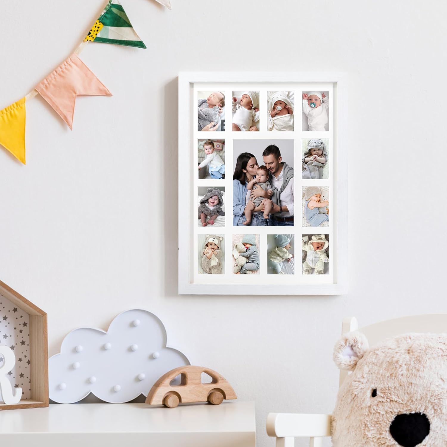 12 month photo frame,my first year photo board,K-12 Collage Photo Frame for Baby First Year Keepsake, 12×16 Multi Picture Frame-13 Opening,Great for Children’s Photos, Portrait