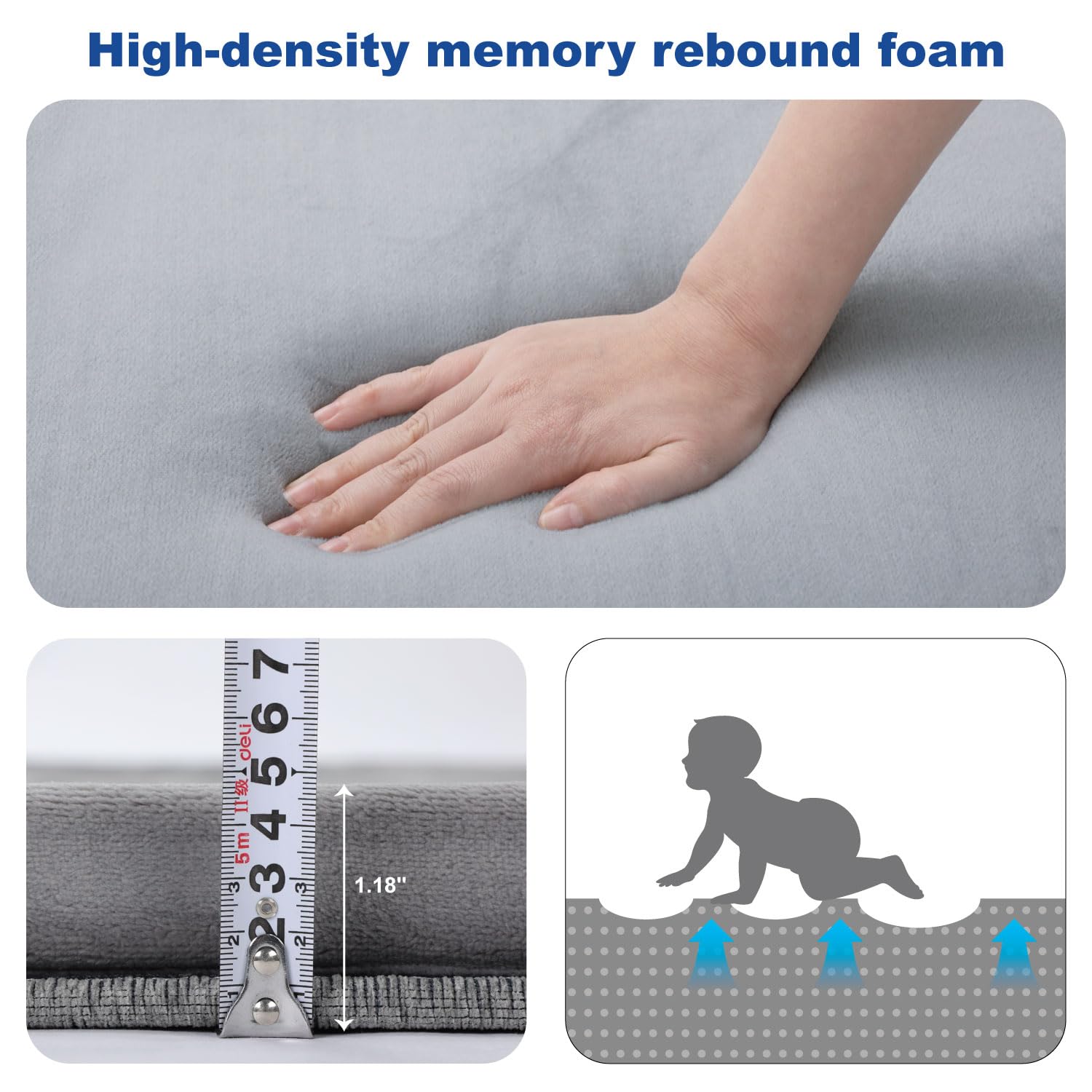 【Soft and thickened Play Mat】: Use high-quality, non-toxic high-density memory slow rebound sponge as the internal material, the thickness of the gBaby Play Mat is 1.18” (3cm), effectively protect the baby from falling when crawling, protect the knees, and feel great when stepping on barefoot, bringing fun experience to the baby’s play