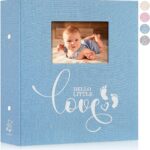 Lanpn Baby Photo Album 4×6 300 Pockets, Linen Newborn Bebe Ultrasound Photo Album with Memo Writing Area, Cover Photo Book, Picture Album for kids, Baby Boy Memory Book Keepsake Blue