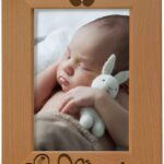 KATE POSH Tiny Miracle Engraved Natural Wood Picture Frame, New Baby Frame, Newborn Baby Gift, Gender Reveal Gift (4×6 Vertical)