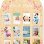 ORIGACH My First Year Baby Growth Photo Display Wood Board – 12 Months Newborn Milestones Picture Frame – Neutral Baby Keepsake Board 1st Birthday Party Nursery Decor New Mom Gift – Pink Butterfly