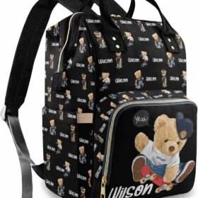 Custom Bear Diaper Bag Backpack for Baby Boy, Personalized Name Cute Cartoon Large Nappy Nursing Orangizer Mommy Bags, Waterproof Travel Daypack for Dad Mom Gifts