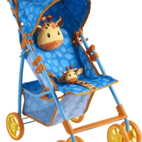 Baby Doll Stroller for Toddlers 3-10, Pillow Animal Toy Baby Stoller for Dolls, Blue Folding Baby Toy Stroller for Dolls, Foldable Stroller for Girls, for Bigger Kids (Giraffe)