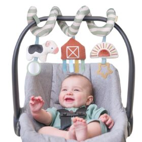 Itzy Ritzy Spiral Car Seat & Stroller Activity Toy – Stroller & Car Seat Toys for Ages 0 Months and Up – Hanging Toys Include Dangling Ring, Mirror and Textured Ribbons (Farm)