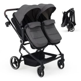 Side by Side Double Stroller for Twins, Lightweight Compact Foldable Baby Travel Stroller with High Landscape Seat, Adjustable Canopy & Recline for Infant and Toddler, Dark Grey