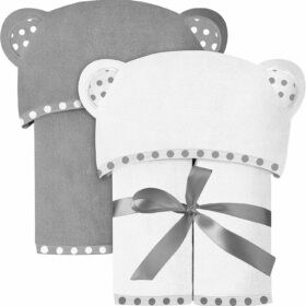 Set of 2 Hooded Baby Towels – White and Grey – Luxurious, Large and Super Absorbent – 30 x 30 Inch – Soft and Suitable for Infants, Toddlers and Kids – 400 GSM