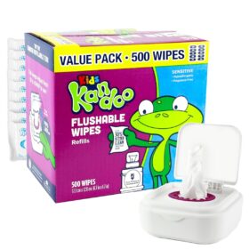 Flushable Wipes for Baby and Kids by Kandoo, Sensitve and Unscented Formula, Hypoallergenic Potty Training Wet Cleansing Cloths, 50 Count, 10 Pack + Tub