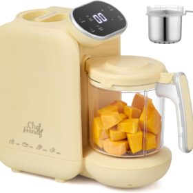Chefhandy Baby Food Maker, Steamer & Blender with Stainless Steel Basket, Puree Maker with Auto/Manual Blend, Bottle Warmer & Sterili-zer, Safe & Easy-to-Clean Compact Baby Food Processor (Yellow)